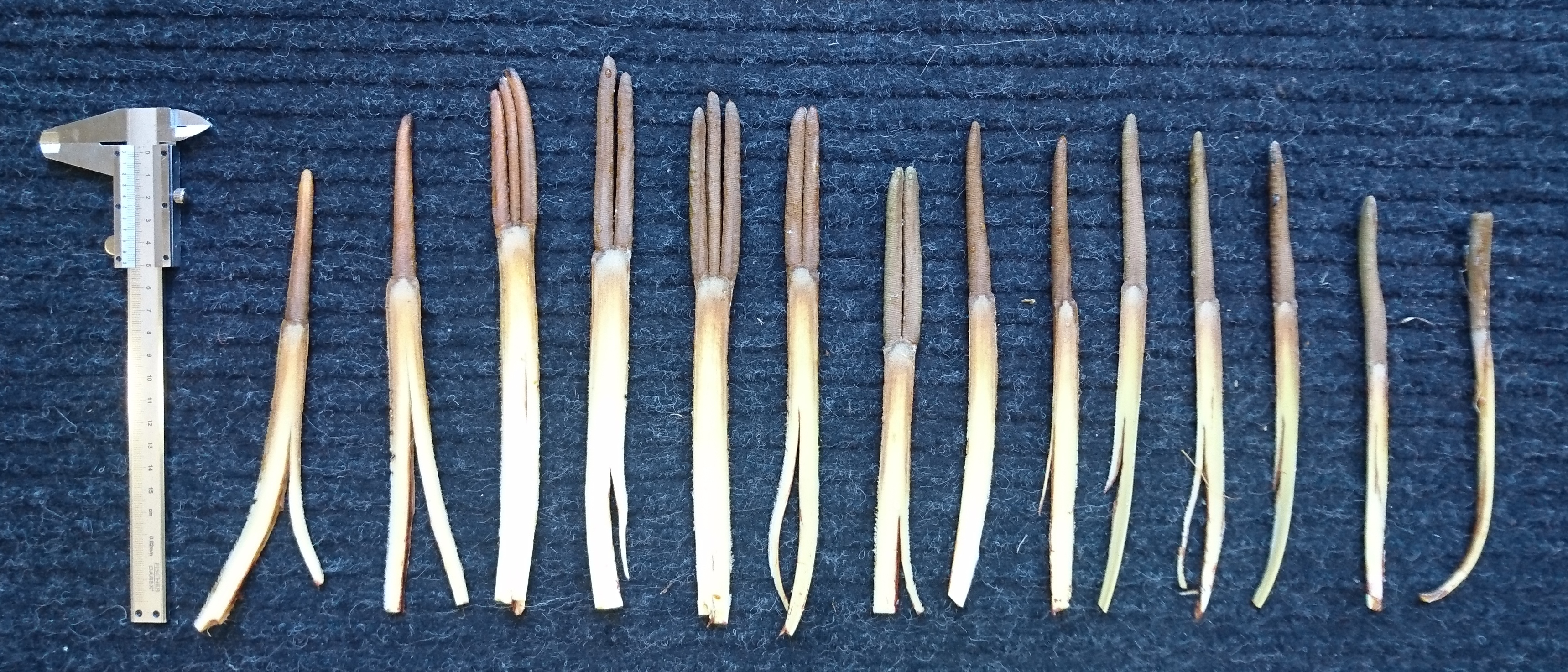 Interesting material starts to accumulate. In this image are displayed some of our samples. From left to right: fruits of different species of Hyphaene, male rachillae at different stages of development, leaf fragments in Hyphaene, Medemia and Borassus.